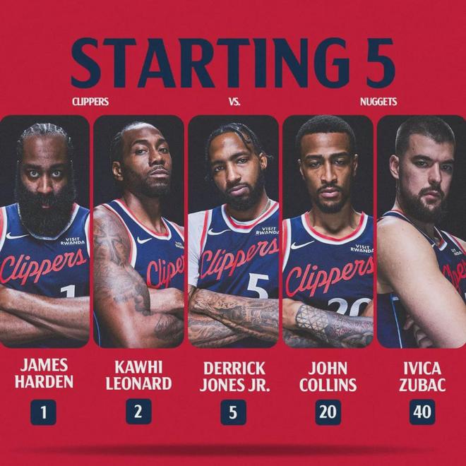 北京时间10月13日,NBA季前赛:快船主场vs掘金,比尔(膝伤)和博格丹(背伤)今天缺阵。保罗继续替补出战,快船本场首发:哈登、小德里克-琼斯、伦纳德、科林斯和祖巴茨。快船算是五大阵容了,首发均在1米96以上。