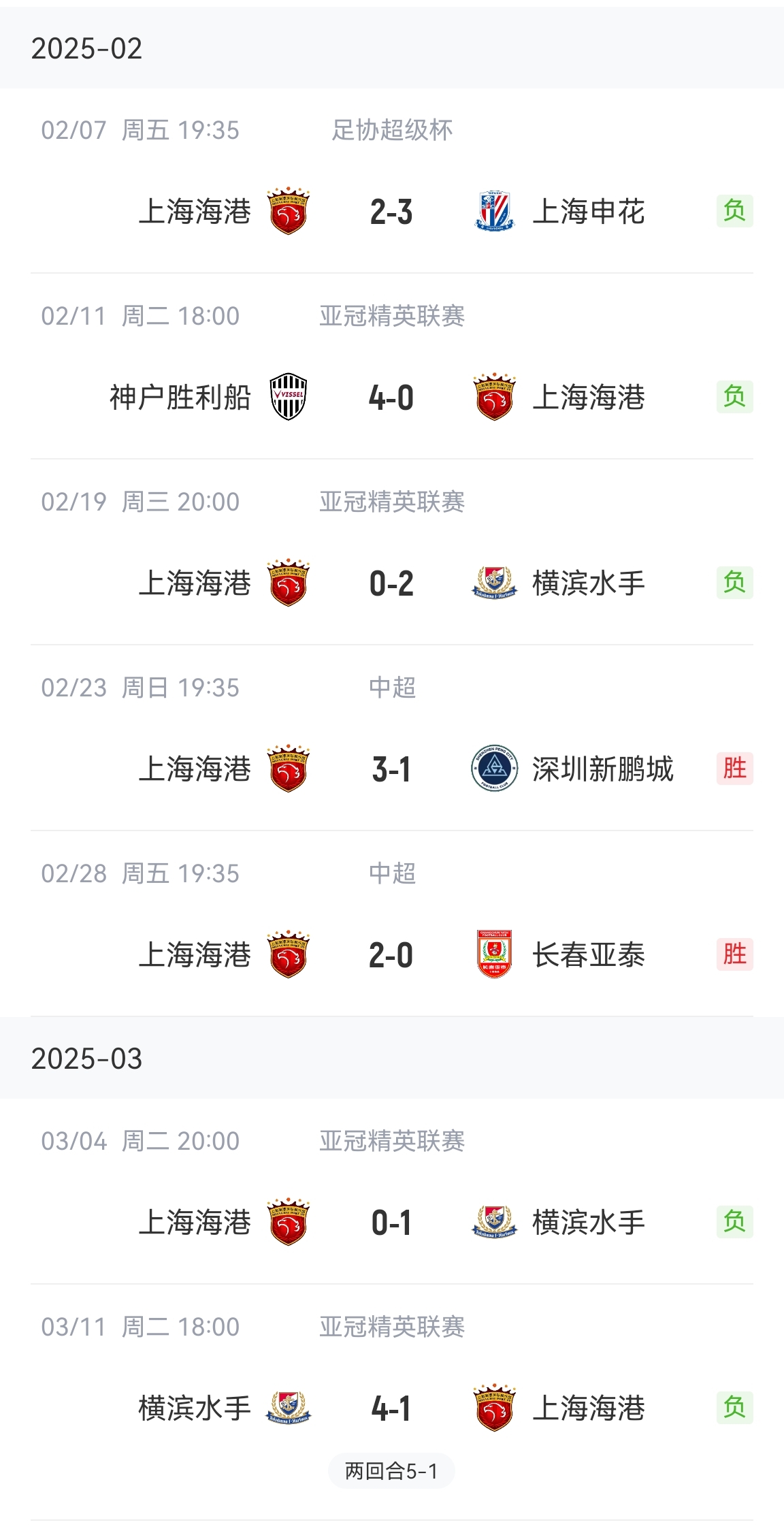 03月11日讯 海港1-4横滨总分1-5无缘亚冠八强,这场比赛是海港2025年的第5场败仗,这一数据已经追平了2024全年。