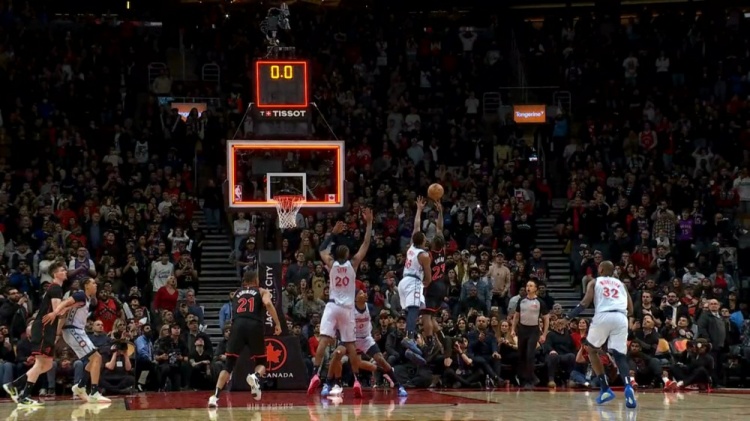 奇才队垂头丧气地站在一旁,希望裁判的审查能取消这个进球。当裁判做出裁决——谢德在时钟指向0:00时仍有两个手指触球——奇才队高兴地跳了起来,猛龙队从兴奋变为震惊,噪音从喧闹变为困惑的低语。
