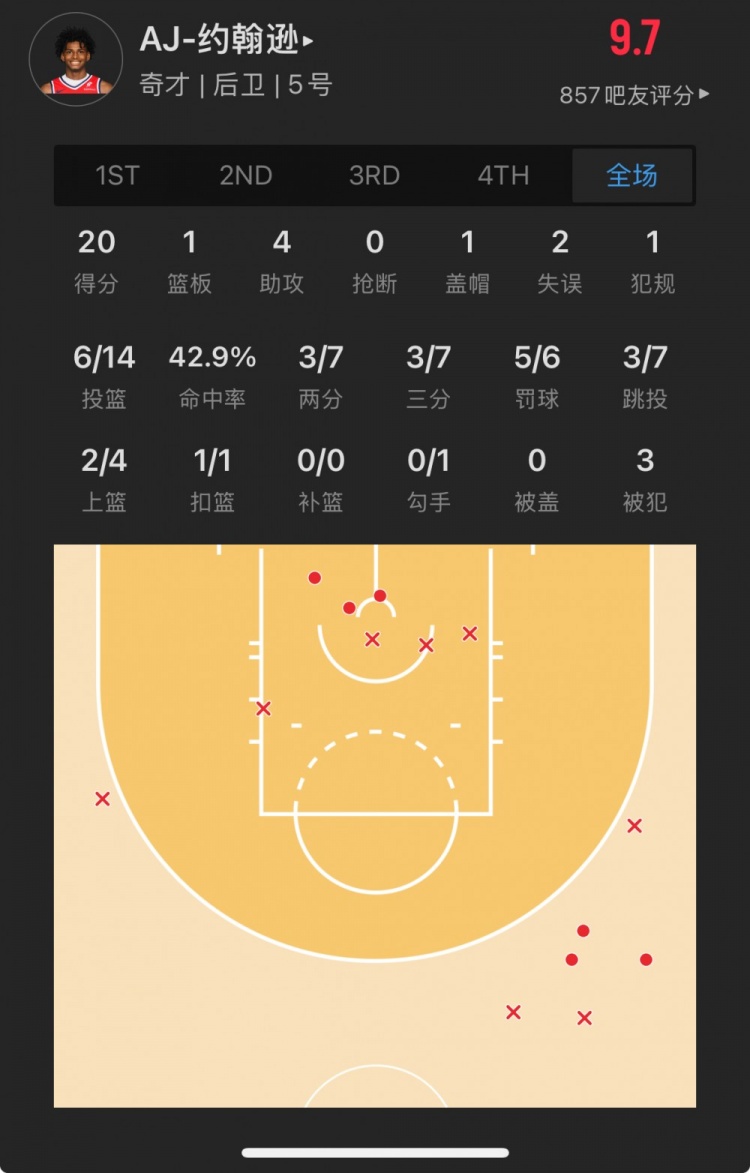 奇才23号秀 AJ-约翰逊 登场42.3分钟