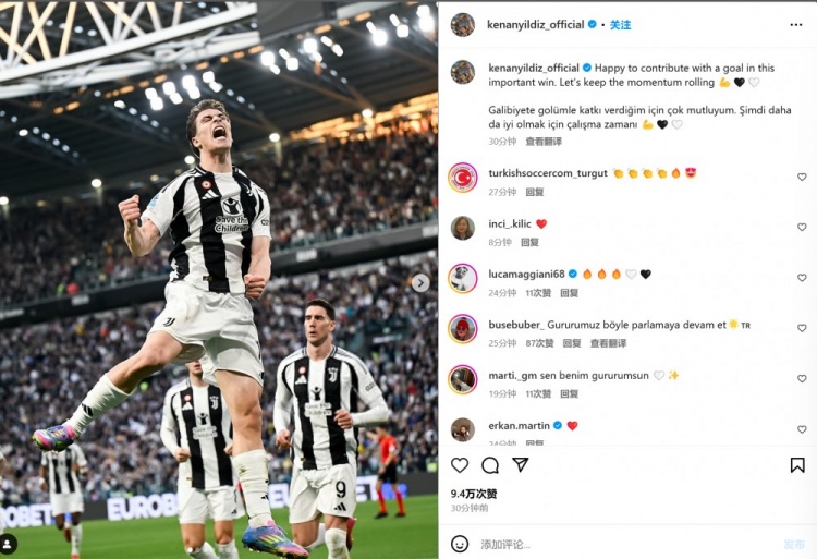 伊尔迪兹通过社媒晒出自己的庆祝照,并配文:“很高兴能用进球为这场重要的胜利做出贡献!让我们继续当前的势头。”